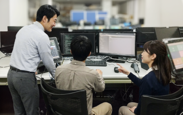 エンジニア・テスト・サポートが同じフロアで働く環境。